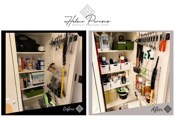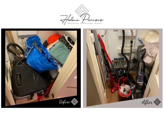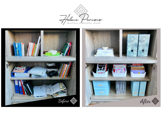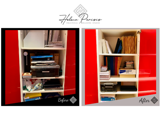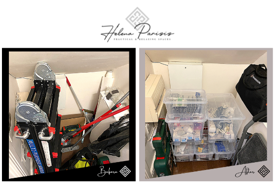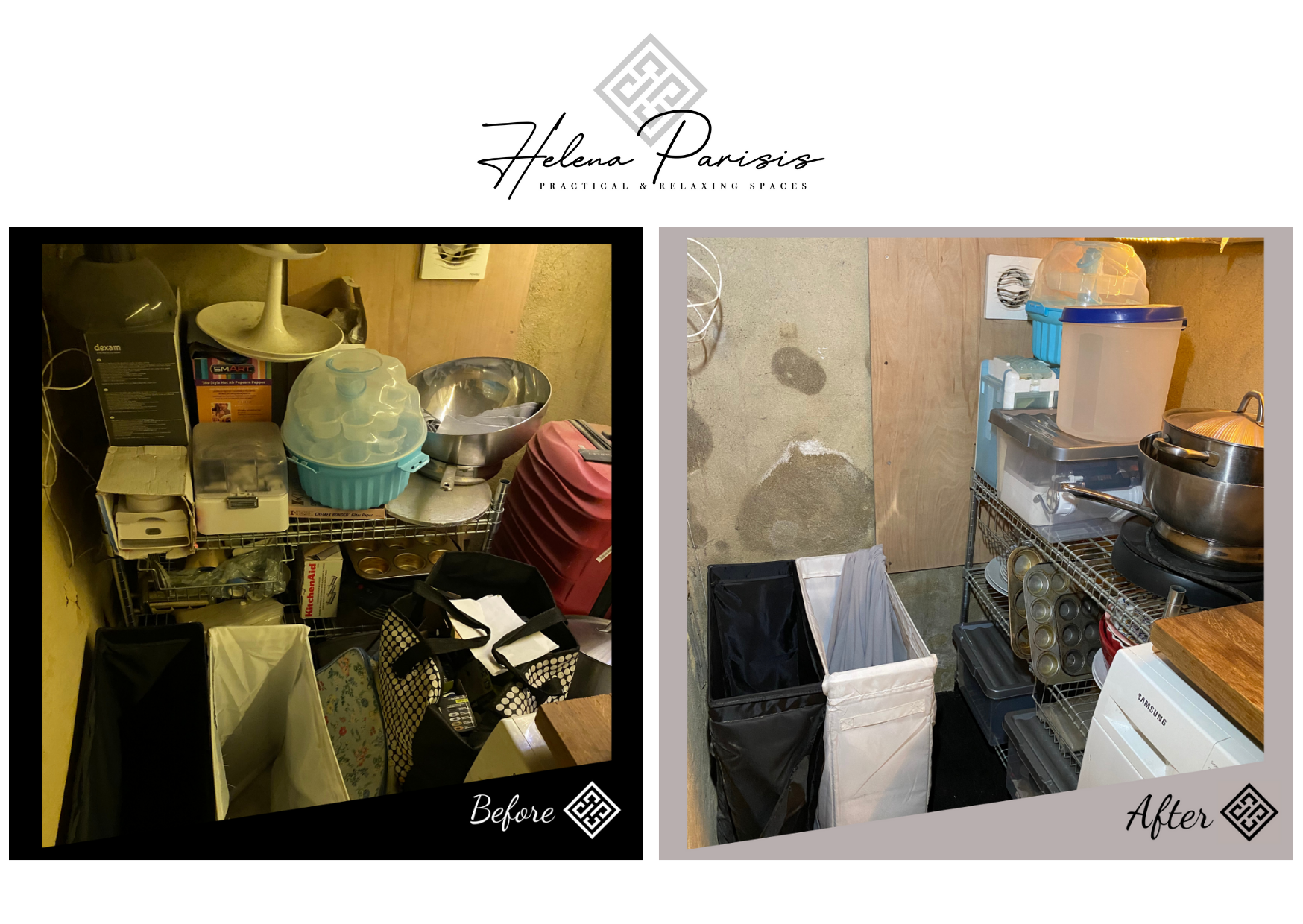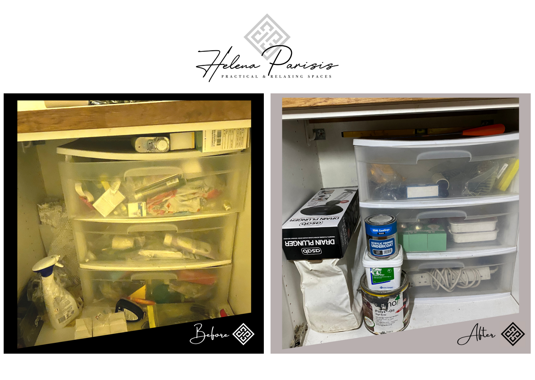 Helena is a tireless worker and creates beauty where there was chaos and suggested all sorts of useful containers so everything now has a home. I have enjoyed tackling my storage areas with her and the results are so satisfying and I can now find everything. She has also created calm and order in my office.