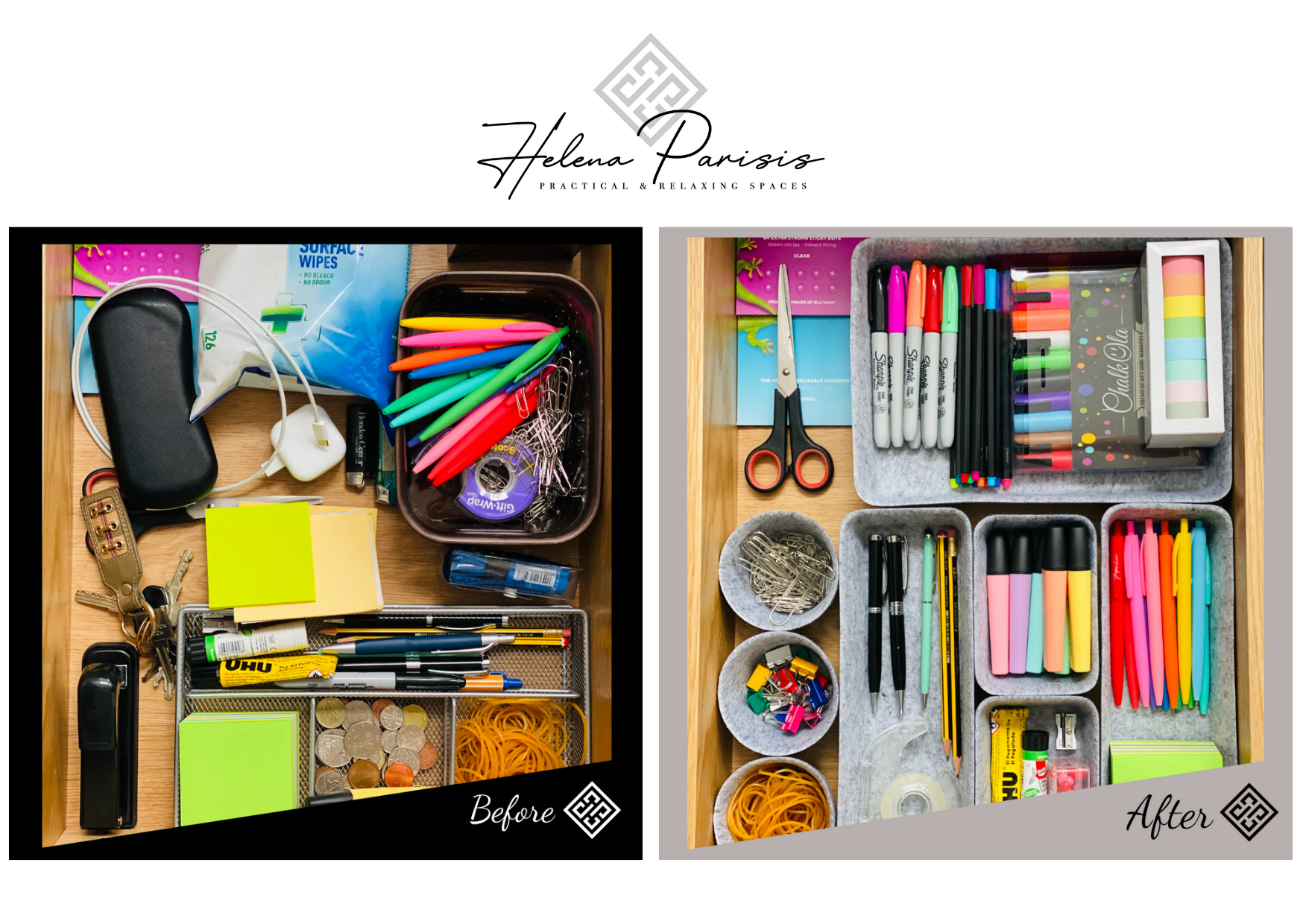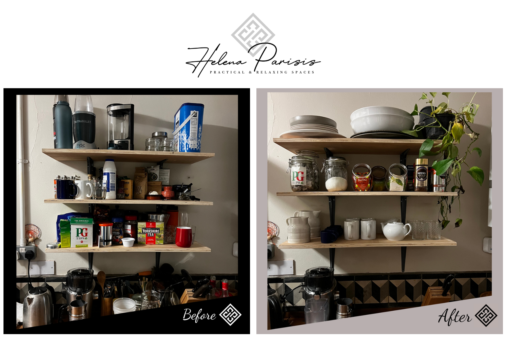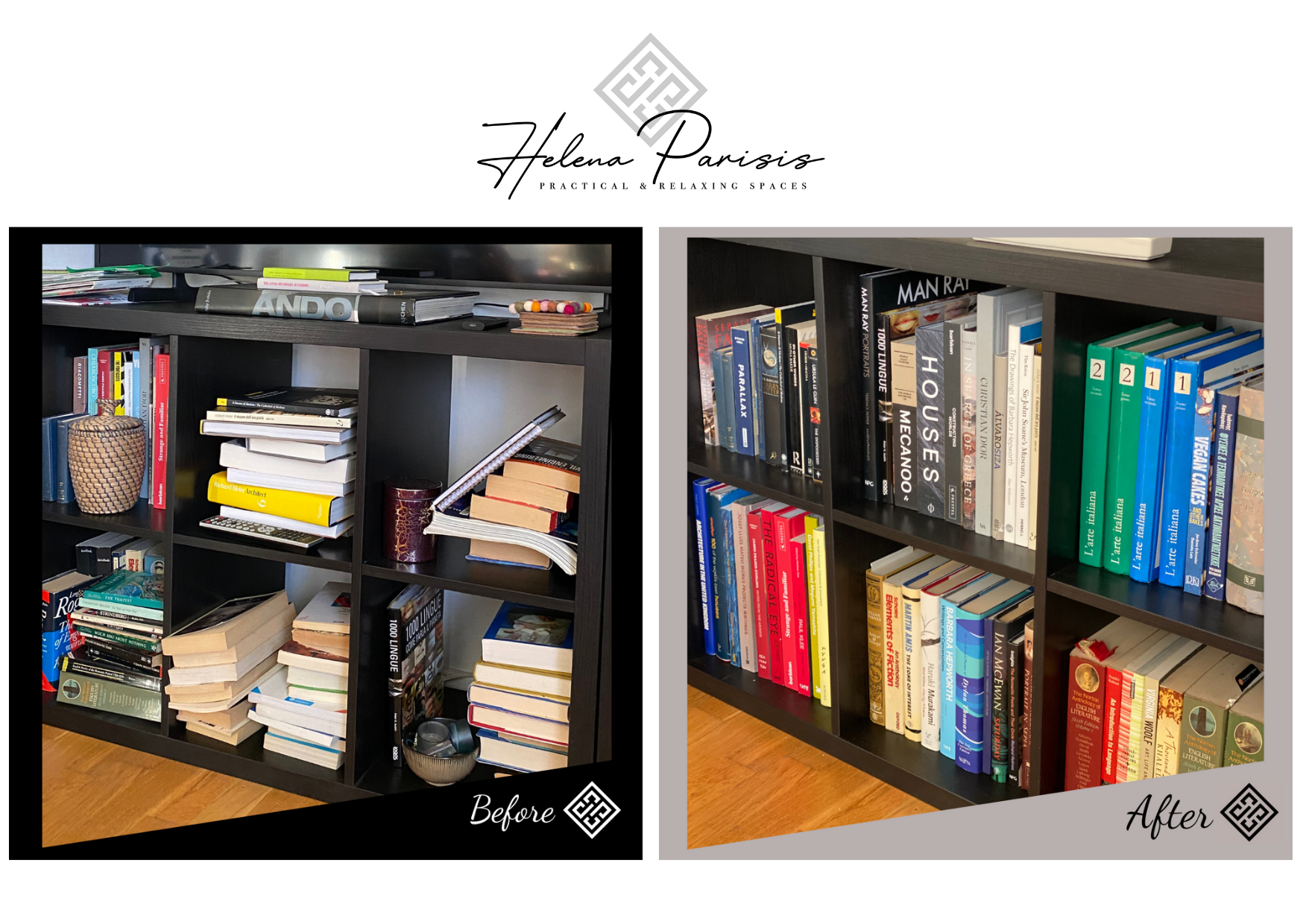 Helena is a tireless worker and creates beauty where there was chaos and suggested all sorts of useful containers so everything now has a home. I have enjoyed tackling my storage areas with her and the results are so satisfying and I can now find everything. She has also created calm and order in my office.